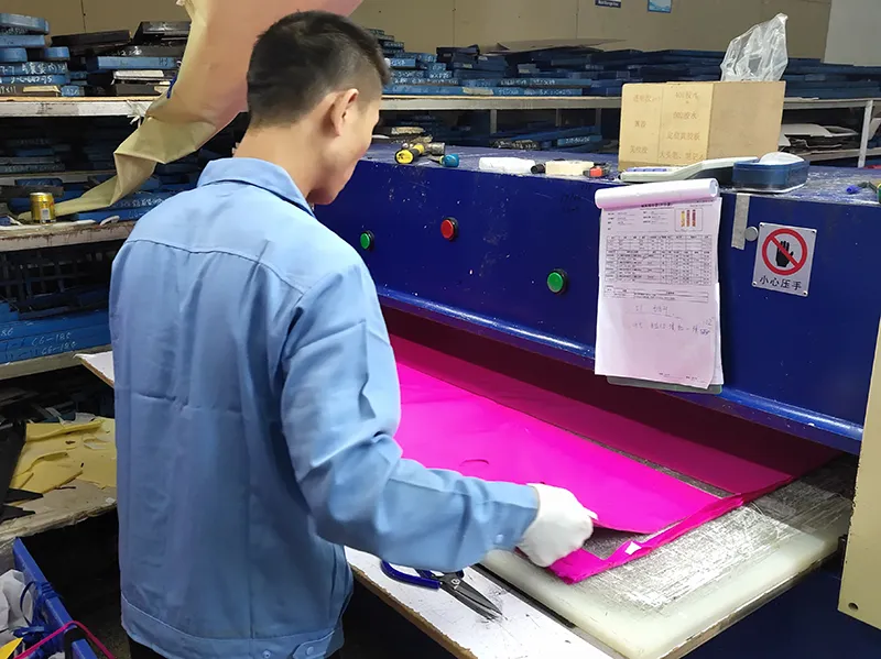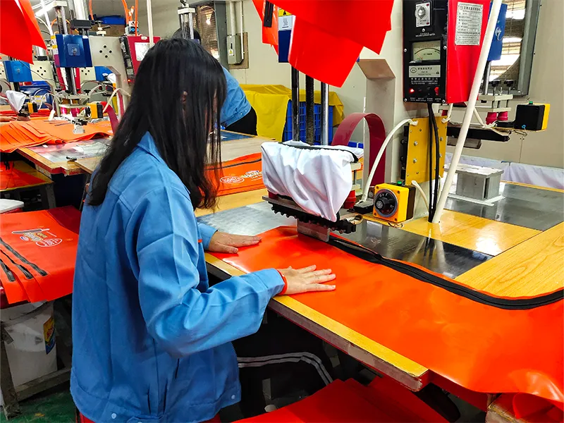 Våre fabrikker er utstyrt med industriledende automatisert produksjonsutstyr, inkludert intelligent skjæring, presisjonssveising og automatiserte samlebånd. Dette avanserte oppsettet har økt vår totale produksjonseffektivitet med over 30 %. Det lar oss konsekvent mestre krevende teknikker som høyfrekvent varmeforsegling.